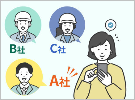 お客様が興味を持たれた業者とだけご連絡を取っていただけるので、お忙しい中不必要な電話対応に時間を割かずにご自分のペースで比較いただけます。