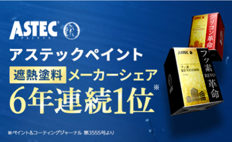 アステックペイントは、建物の寿命を延ばす塗料の開発に取り組んでいます。その結果、遮熱塗料のメーカーシェア6年連続No.1※を獲得するなど、多くのご支持をいただいております。また、全国3,700社以上※の優良塗装業者様とのネットワークを活かして、外壁・屋根塗装や外回りリフォームの業者選びをサポートするサービス事業も展開しています。