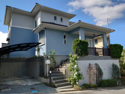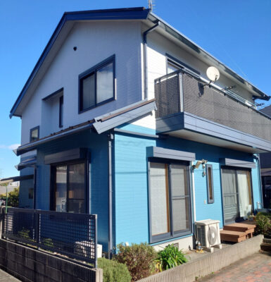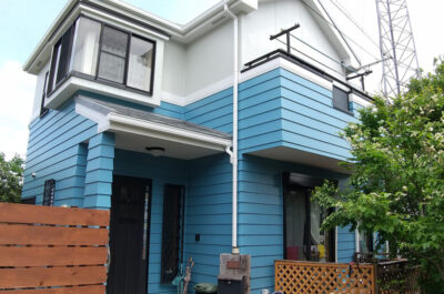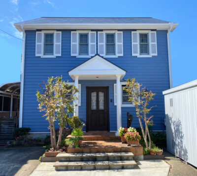 深みのあるブルーで外観全体をきりっと見せた事例です。