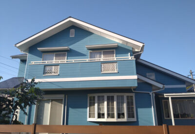 ブルーは単色でまとめてもきれいに見えやすい一方で、白・グレー・ベージュ・ブラウンなどと組み合わせることで、印象の調整がしやすい色でもあります。たとえば白と合わせると海沿いにあるように爽やかなマリンイメージに、グレーと合わせると都会的に、ベージュやブラウンと合わせると温かみのある外観に寄せやすくなります。単色で使うか、ツートンで使うかによっても印象が変わるため、幅広い選択肢を持ちやすい色です。