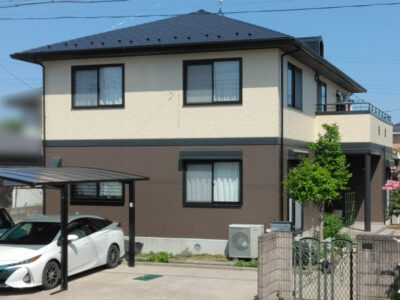 塗装をする際、「建物のデザインに合っているか」という点はとても大切です。建物のデザインとの調和です。ベージュは和風・洋風どちらの住宅にも合わせやすく、近隣の家並みの中でも浮いて見えません。色選びで大きな失敗をしにくい、安心感のある色です。