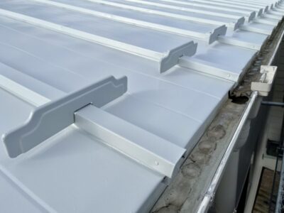 | 屋根材の特長 | 陶器である和瓦と同様の素材を軽量化した屋根材です。 | セメントに繊維素材を混ぜて圧縮成形した断面が波の形をしたスレート。工場や倉庫などの大型の建物で使われることが多い屋根材です。 | 屋根の頂部の棟から軒先までを1枚物の金属をクレーンで持ち上げて張っていきます。倉庫・体育館などの大型建築で多用される金属屋根です。 |